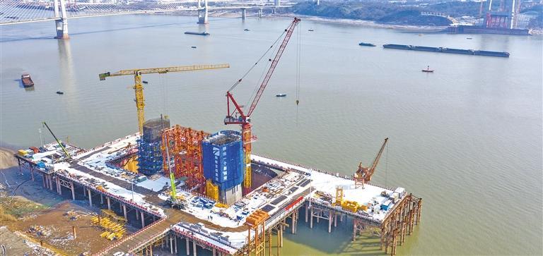 1月16日,由中铁大桥局承建的安徽G3(京台高速)铜陵长江公铁大桥3号主墩在进行塔柱施工。