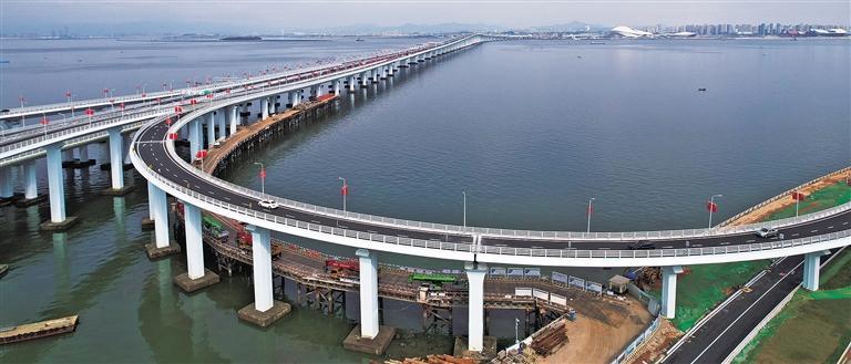 1月17日,历经3年建设的福建省首座预制装配化跨海大桥——厦门翔安大桥主桥正式通车。翔安大桥全长约12公里,其中跨海桥梁长约4.5公里,设计时速80公里。曾德猛摄(中经视觉)