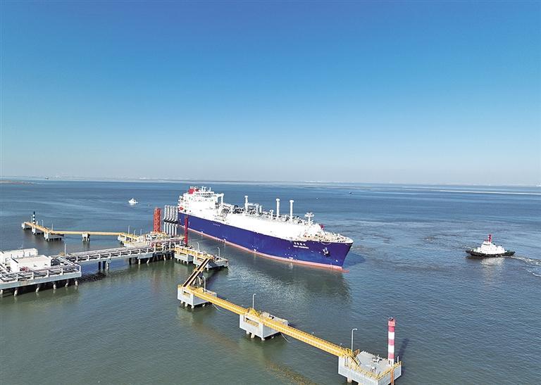 一月十六日,“中能北海”号液化天然气(LNG)运输船靠泊在中国石化天然气分公司天津LNG接收站一号泊位。春节期间,该站二十四小时不间断值守,保障天然气稳定供应。王 军摄(中经视觉)