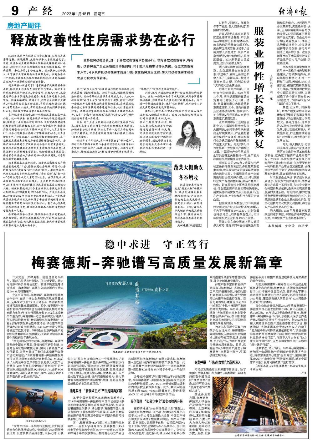 稳中求进,守正笃行。2023年,梅赛德斯-奔驰将一如既往地与经销商合作伙伴齐头并进,持续聚焦豪华,提速“全面电动”,坚持创新驱动,坚守“商责并举”可持续发展观,满足中国客户不断升级的可持续豪华出行需求。