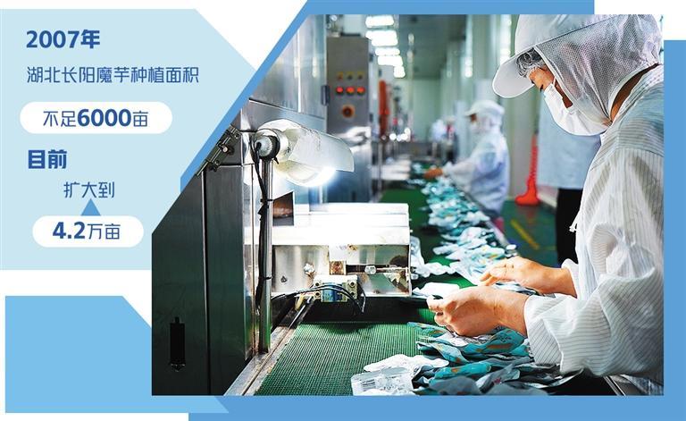 魔芋种植在位于武陵山余脉、清江中下游的湖北省长阳土家族自治县有着悠久的历史。2007年,长阳县委、县政府引进湖北一致魔芋生物科技股份有限公司,拉开了全县魔芋产业革命的序幕,如今企业跻身国家专精特新“小巨人”、农业产业化国家重点龙头企业,带动当地经济社会发展。