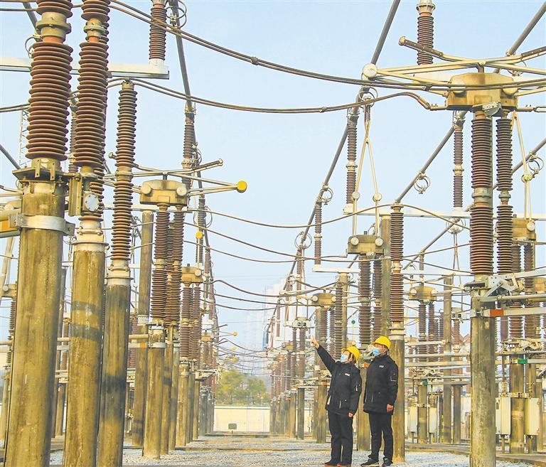 ▶1月22日,国网河南省南阳供电公司宛北变电站,工人在巡查设备,保障城市春节用电。