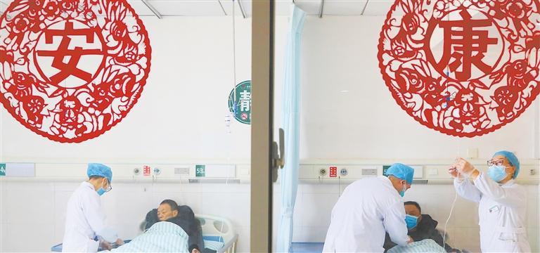 ◀1月21日,湖南省新田县人民医院五官科,医护人员在给患者查体治疗。