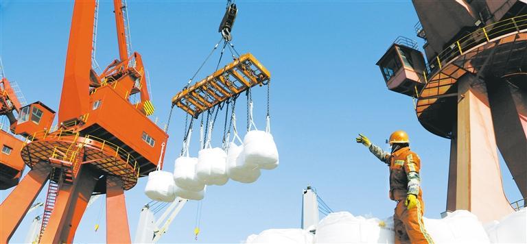 ▲1月21日,工人在江苏连云港港东方公司码头泊位上装运物资,坚守岗位保生产。