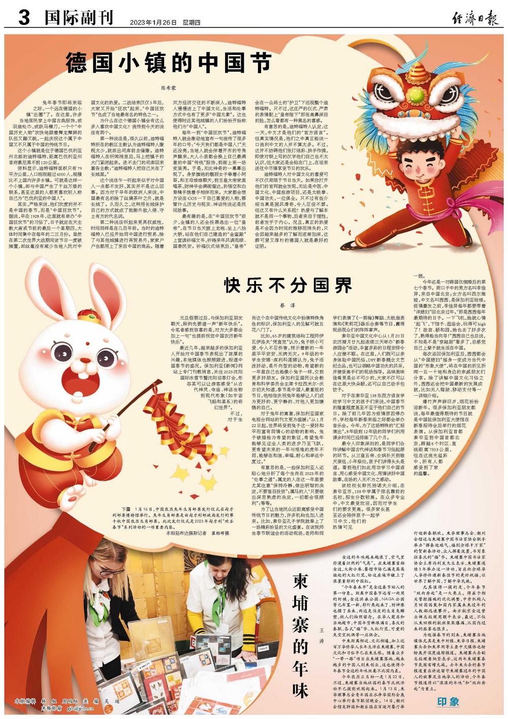 兔年春节即将来临之际,一个远在德国的小镇“出圈”了。在这里,许多当地居民穿上中国古典服饰,或羽扇纶巾,或跃马横刀,一个个“中国历史人物”欢快地跟着舞龙舞狮的队伍又蹦又跳,一起庆祝这个属于中国又不只属于中国的传统节日。
