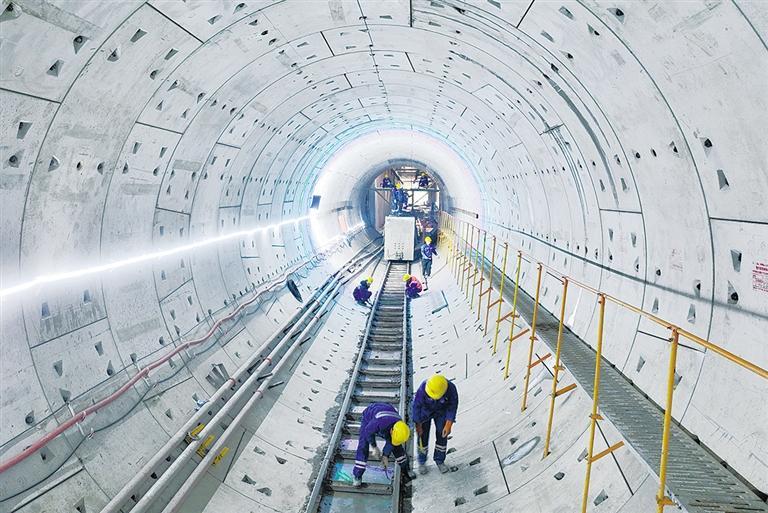 1月26日,浙江省湖州市德清县杭德市域铁路建设现场,中铁隧道局的建设者在进行轨道养护作业。该项目春节期间不停工,建设工人坚守在施工一线,全力抢抓工期进度。杭德市域铁路工程全长25.6公里,通车后将满足沿线群众多元化出行需求。谢尚国摄(中经视觉)