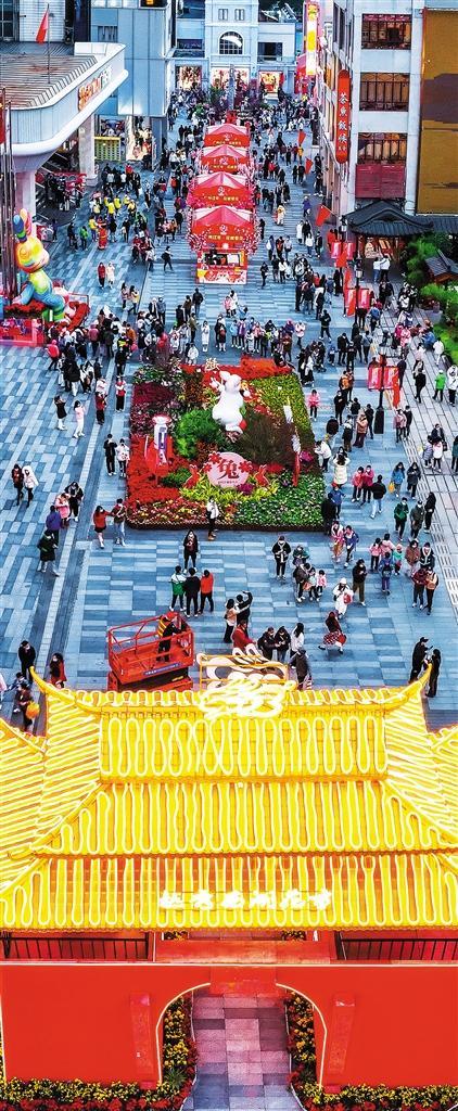 逛迎春花市,是广东当地春节期间重要的民俗活动,它融合了广州人“讲意头”的传统,深受群众喜欢。2007年,广州迎春花市成为省级市级非遗。2021年,“行花街”民俗被列入第五批国家级非物质文化遗产名录。