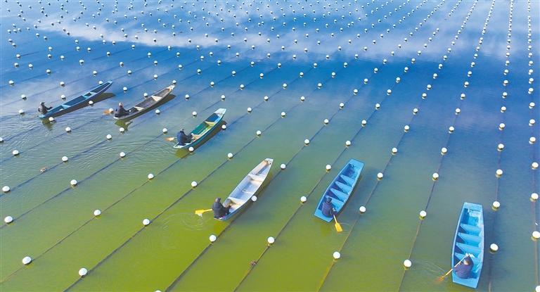 1月31日,浙江省湖州市德清县洛舍镇小山漾珍珠生态养殖基地,养殖户正在对珍珠蚌进行管护。近年来,德清县大力发展特色珍珠养殖产业,年珍珠深加工总量近100吨,占全国淡水珍珠总产量的10%左右,年产值超70亿元。王棋铭摄(中经视觉)
