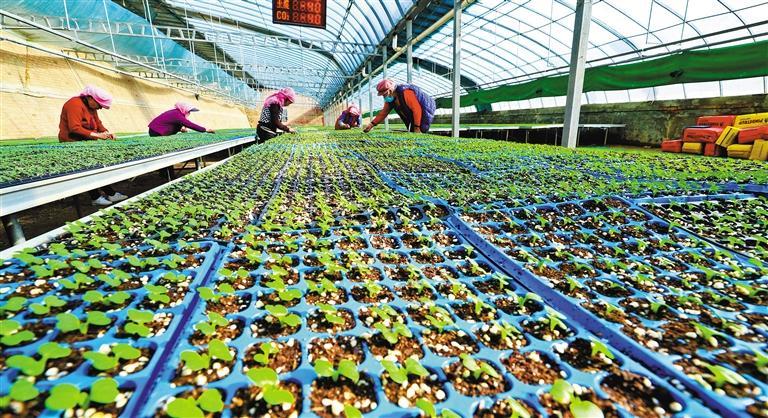 1月31日,甘肃省张掖市甘州区党寨镇雷寨村育苗中心内,种植户们正忙着给娃娃菜疏苗。甘州区着力打造完整蔬菜产业体系,带动农民增收致富,助力乡村振兴。 王 将摄(中经视觉)