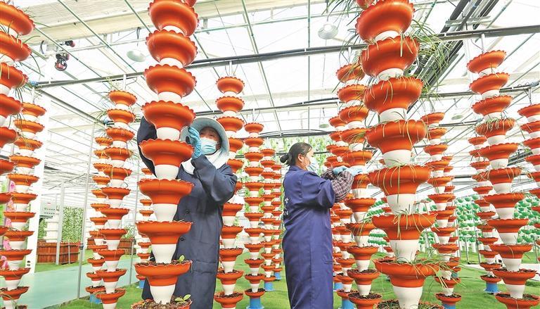 1月31日,安徽省蒙城县兴农绿港现代农业科技产业园智能玻璃温室内,工人正管理无土栽培蔬菜。近年来,蒙城县大力发展智慧农业,提升农业科技化、标准化、产业化水平。胡卫国摄(中经视觉)