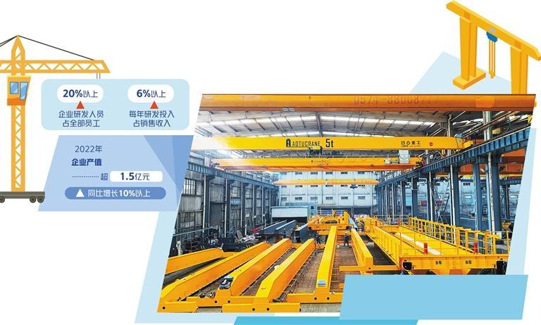 “今年订单已经排到了7月份以后,同比增加40%。”凹凸重工总裁朱帅说,作为起重机细分领域的龙头企业,2022年凹凸重工产值超1.5亿元,同比增长10%以上。