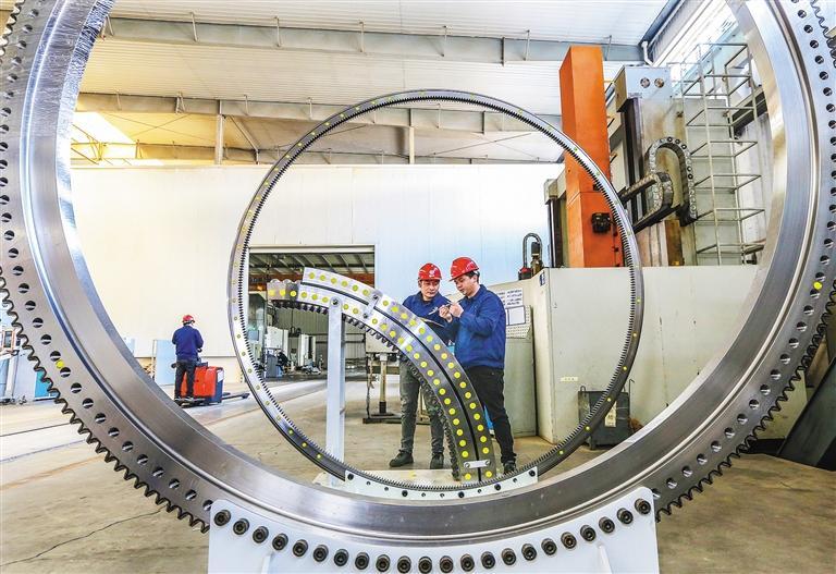 ▼2月2日,安徽马鞍山经开区方圆精密机械有限公司技术人员在生产回转支承产品。连日来,马鞍山经开区各企业抢时间争速度,奋战首季“开门红”。王文生摄(中经视觉)