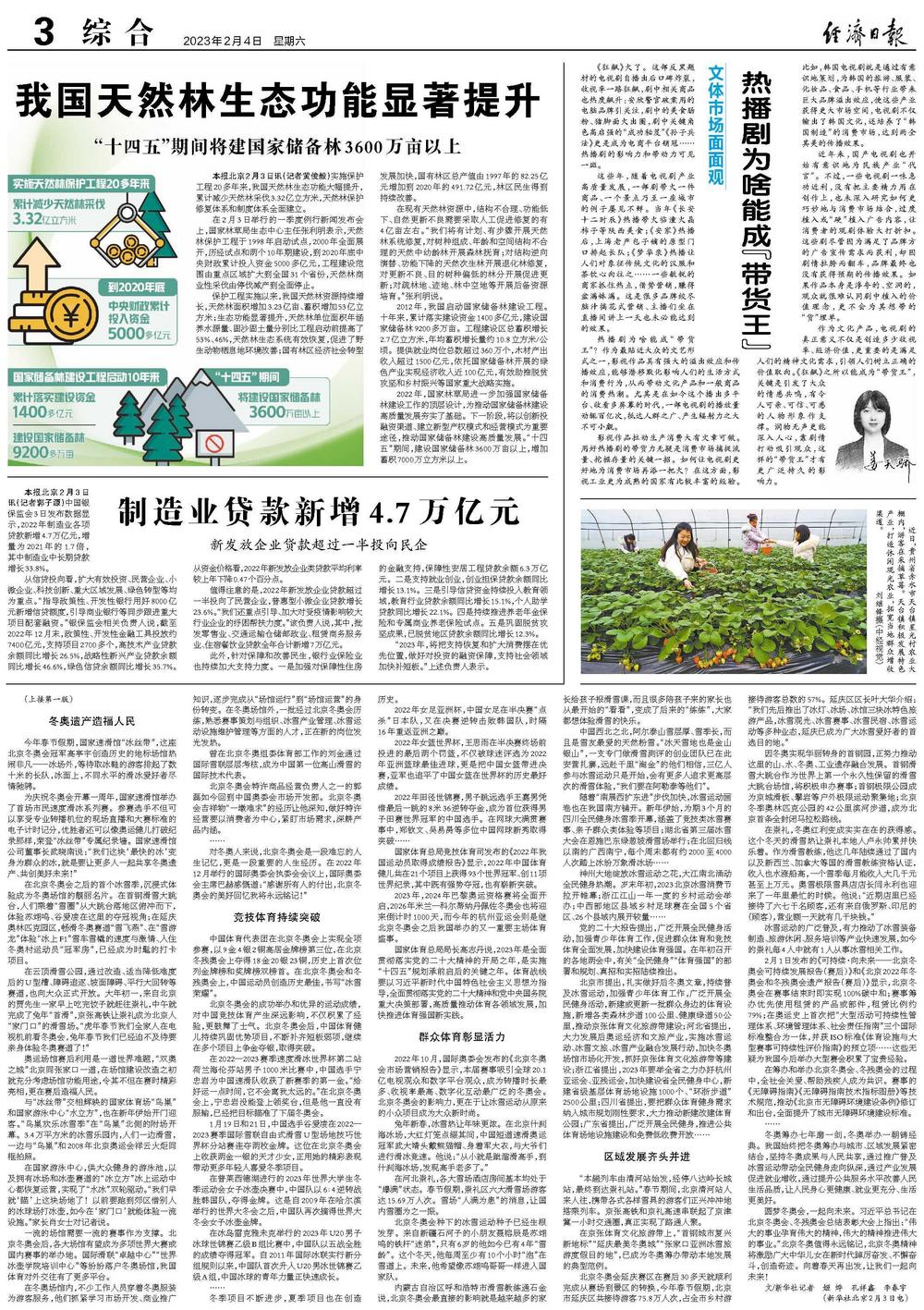 2月1日发布的《可持续·向未来——北京冬奥会可持续发展报告(赛后)》和《北京2022年冬奥会和冬残奥会遗产报告(赛后)》显示,北京冬奥会在赛事结束时即实现100%碳中和;赛事筹办优先使用租赁的产品或部件,租赁比例约79%;在奥运史上首次把“大型活动可持续性管理体系、环境管理体系、社会责任指南”三个国际标准整合为一体,并获ISO标准《体育设施与大型赛事可持续性评价指南》的预立项……这些无疑为我国今后举办大型赛会积累了宝贵经验。