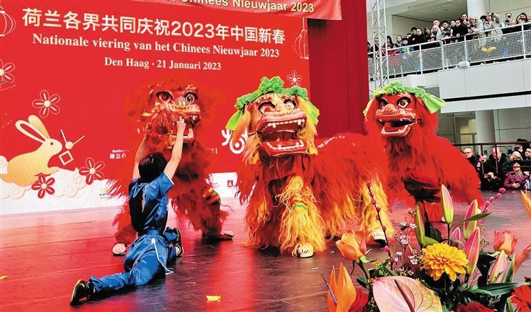 ▼1月21日除夕,荷兰海牙市政厅内张灯结彩,一片欢腾,荷兰各界共同庆祝2023年中国新年。王湘江摄