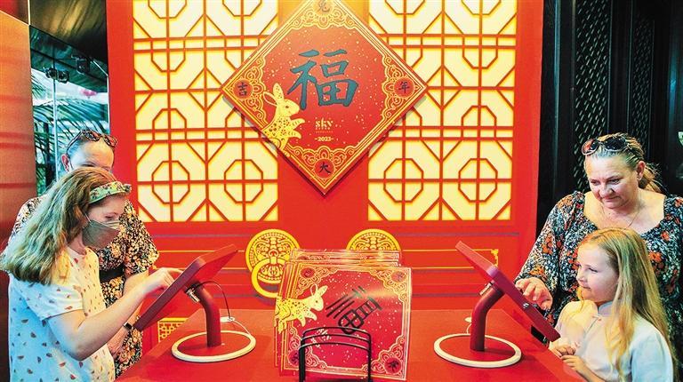 ▼1月22日,新西兰奥克兰举行多种文化活动庆祝中国年,人们在体验电脑打印“福”字。赵 纲摄