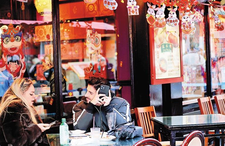 ▼1月20日,人们在英国伦敦中国城一家餐厅用餐。中国农历新春临近,伦敦中国城年味浓厚。李 颖摄