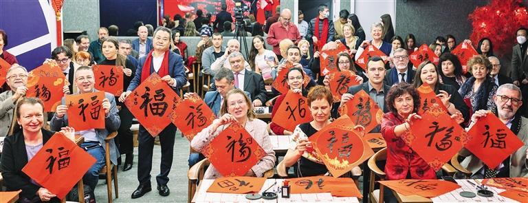 ▼1月20日,保加利亚首都索非亚中国文化中心举办“新春游园会”活动,人们用中国书法写下新春祝福。