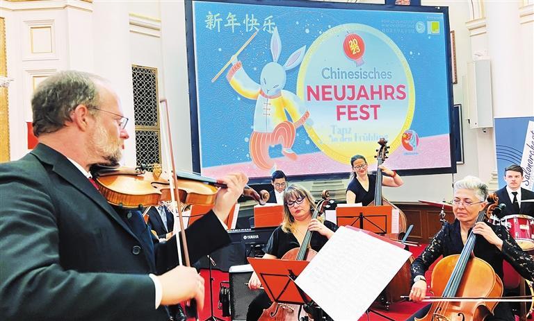 ◀1月26日,奥地利格拉茨大学孔子学院举办兔年春节圆舞晚会,格拉茨管弦乐团带来精彩演奏。本报驻维也纳记者 翁东辉摄
