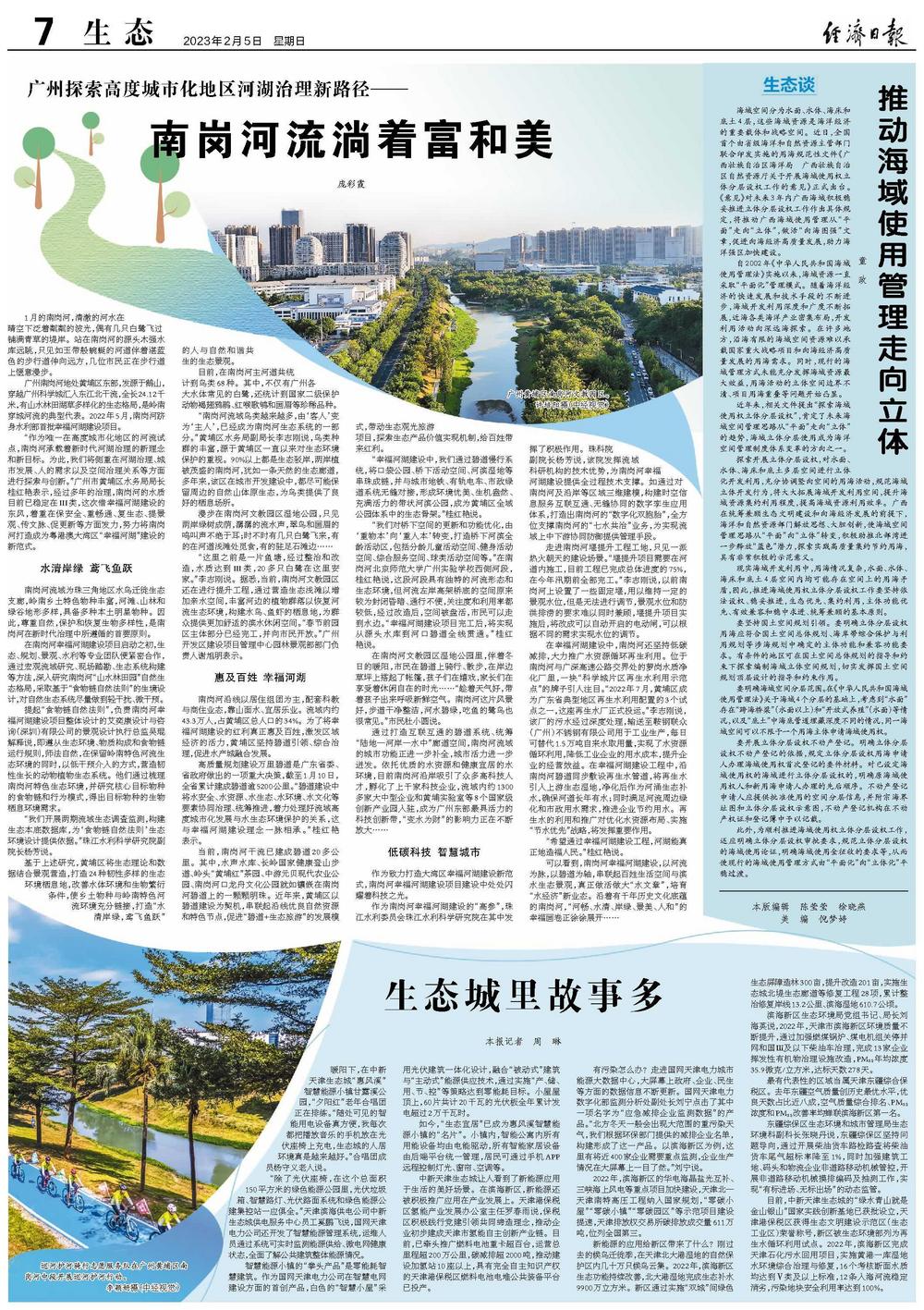 目前,中新天津生态城的“绿水青山就是金山银山”国家实践创新基地已获批设立,天津港保税区获得生态文明建设示范区(生态工业区)荣誉称号,新区被生态环境部列为再生水循环利用试点。2022年,滨海新区完成天津石化污水回用项目,实施黄港一库湿地水环境综合治理与修复,16个考核断面水质均达到Ⅴ类及以上标准,12条入海河流稳定消劣,污染地块安全利用率达到100%。