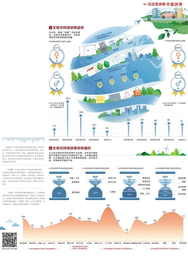 一方面,随着收入水平提高,以及自我意识不断提升,女性成为消费市场的主力军,并深刻影响着消费的理念升级和结构变化。特别是在日常消费时,女性能够主动把“可持续”映射到消费决策中,通过消费践行可持续发展。数据显示,女性消费者在选择产品、品牌和渠道,以及在商品的使用和处置环节上,更愿意把环保、可持续作为消费的重要判断依据。对于相关企业而言,要更加注重女性消费者对可持续消费的影响作用,以技术创新塑造可持续发展之路,加快推出更适合女性消费者的绿色产品和服务,从而实现可持续消费的高质量发展。