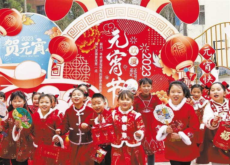 ▶2月3日,在江西省吉安市吉州区北门小学“巧手做花灯 欢乐庆元宵”主题活动现场,孩子们手持花灯庆佳节。