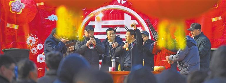 ▶2月5日,太行山革命老区河北省易县七峪乡武家庄村民在表演自编的文艺节目,让村民沉浸式体验传统文化魅力,欢欢喜喜闹元宵。