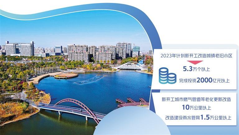 城镇老旧小区改造是城市更新的重要内容,我国将继续扎实推进城镇老旧小区改造。今年计划新开工改造城镇老旧小区5.3万个以上,完成投资2000亿元以上。同时,要大力推进加装电梯,开展住宅外墙安全整治、适老化改造等群众关切的项目。