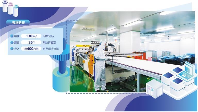 “产品创新成果离不开真金白银的研发投入。美埃科技近几年研发投入持续增长,从2019年的2900多万元增长到2021年的4600万元以上,占营业收入比例从3.7%提高到4%以上。”美埃科技总经理叶伟强告诉记者,为了保持技术领先,公司组建了130多人的研发团队,建设了26个专业实验室,投入近400台套研发测试仪器。