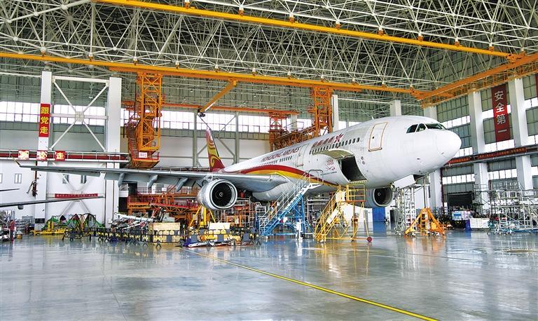 这是在海南自贸港一站式飞机维修产业基地大修机库内进行维修的香港航空空客A330飞机(2月8日摄)。