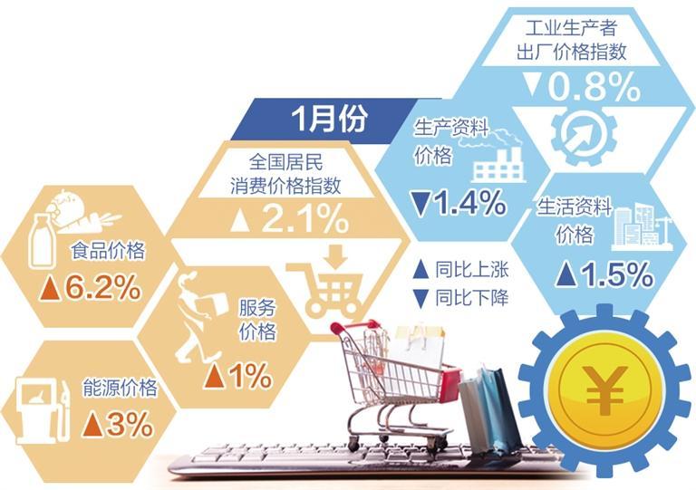 国家统计局2月10日发布的数据显示,1月份,受春节效应和疫情防控措施优化调整等因素影响,全国居民消费价格指数(CPI)同比上涨2.1%,环比上涨0.8%;受国际原油价格波动和国内煤炭价格下行等因素影响,工业生产者出厂价格指数(PPI)同比下降0.8%。