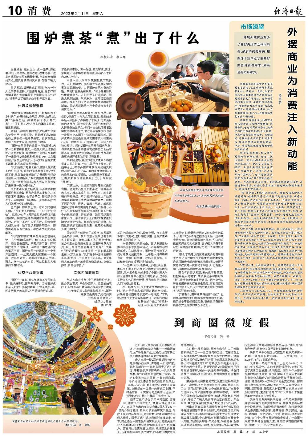 “一壶茶,可以打麻将,也可以谈生意。类似围炉煮茶的这种文化消费方式仍然会延续,但产品会越来越多元。”中国人民大学休闲经济研究中心主任王琪延表示,这不仅是传统茶艺的现代传承,而且能够更好满足人们休闲社交需求。