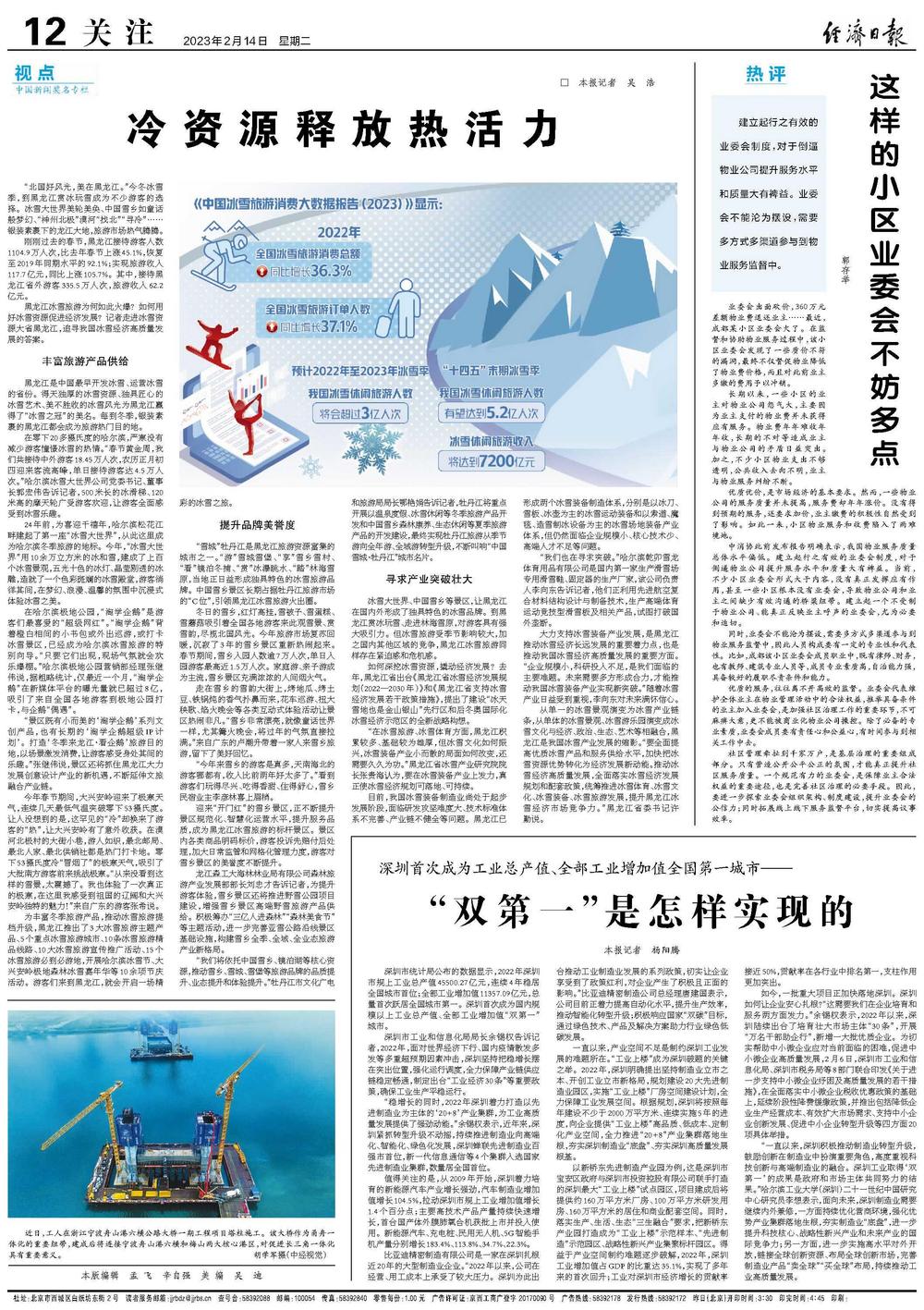 如何深挖冰雪资源,撬动经济发展?去年,黑龙江省出台《黑龙江省冰雪经济发展规划(2022—2030年)》和《黑龙江省支持冰雪经济发展若干政策措施》,提出了建设“冰天雪地也是金山银山”先行区和后冬奥国际化冰雪经济示范区的全新战略构想。