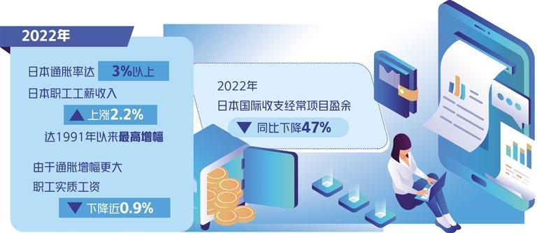 1月23日,日本最大的企业组织“经团联”与工会组织“日本工会联合会”举行首脑会谈,虽然双方同意适当加薪提升职工待遇,但围绕加薪幅度分歧严重。工会方面批评企业界股东利益至上和过分追求短期效益,损害员工利益,因此要求新年度加薪5%以上。但企业界强调要重视扩大就业和促进人才流动,未答应工会要求。日本首相岸田文雄呼吁企业界“加薪要超过通胀”,但这种呼吁也仅是隔靴搔痒。据日本总务省统计,2022年日本通胀率达到3%以上,工会方面指出,除通胀外,税收、社保、防疫等生活成本增加,也加重了家庭经济负担。据日本厚生劳动省统计,2022年日本职工工薪收入上涨2.2%,虽然实现两连升,达到1991年以来的最高增幅。但由于通胀增幅更大,职工实质工资下降了近0.9%。