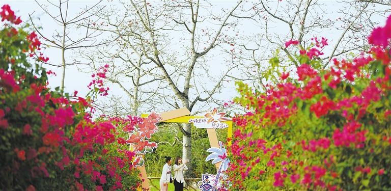 2月17日,游客在海南省昌江县叉河镇排岸村的木棉花海中拍照留念。近日,昌江县启动“春赏木棉红”旅游活动。“中国木棉之乡”作为昌江县的响亮名片,每年都吸引大批游客前来游玩赏花。近年来,当地大力发展以木棉花为依托的旅游产业,推进乡村融合发展,带动村民增收致富。本报记者 高兴贵摄