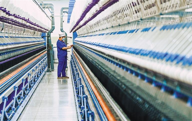 近日,在位于新疆昌吉回族自治州呼图壁县五工台镇的新疆宇华纺织科技有限公司生产车间,工人在智能化生产线上生产棉纱产品。近年来,呼图壁县依托当地优质棉花资源,培育壮大棉花和纺织服装产业,持续带动农牧民就业增收。 陶维明摄(中经视觉)