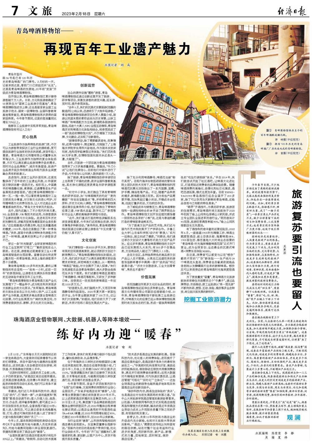 “此外,我们重点打造的特色讲解服务也深受游客喜爱,今年我们还将推出夜游、快闪市集等多种新活动。”袁伟伟说,青岛啤酒博物馆试图通过创新运营让游客在“乍见欢喜”后仍能“久看不厌”。