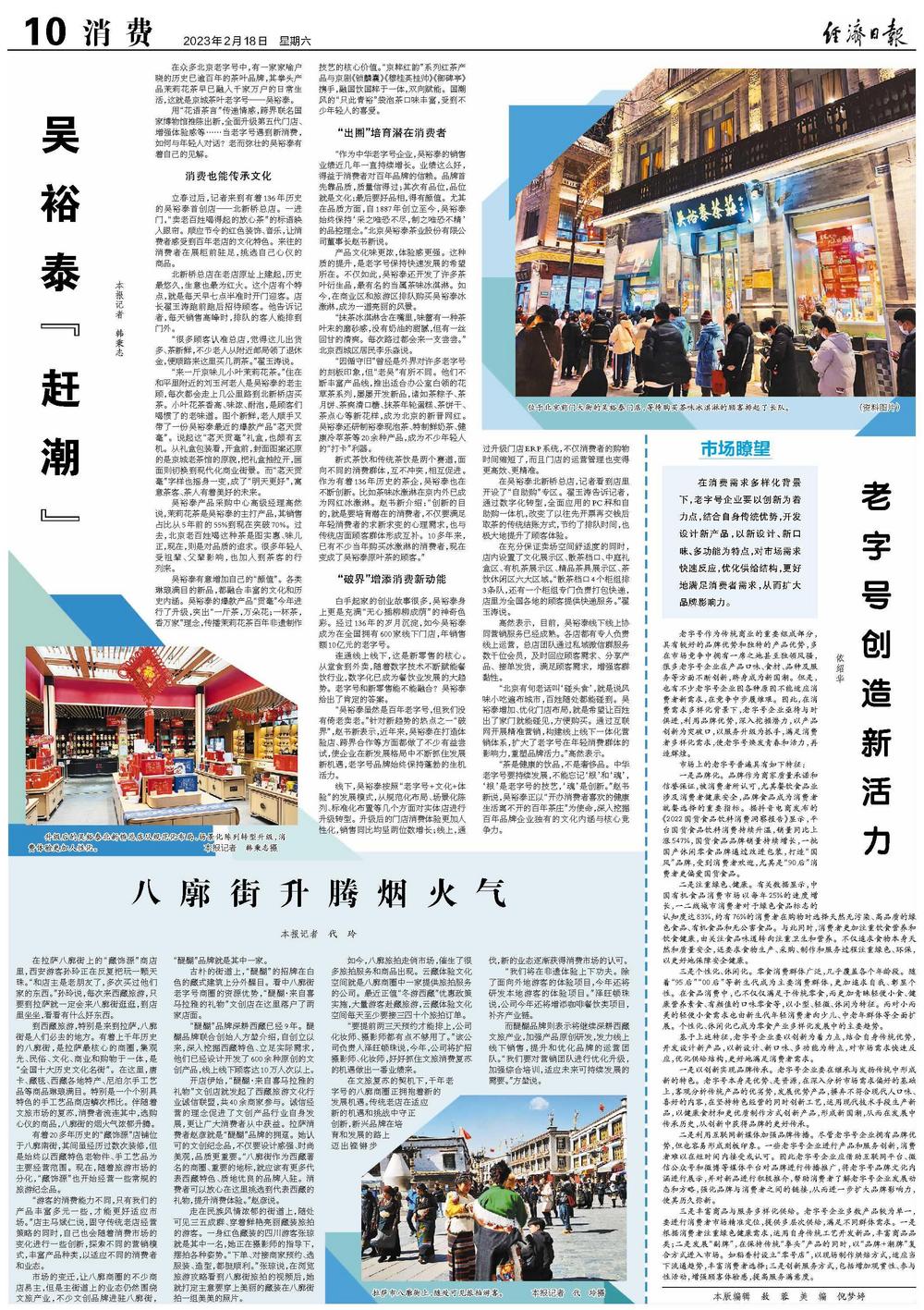 “北京有句老话叫‘碰头食’,就是说风味小吃遍布城市,百姓随处都能碰到。吴裕泰增加、优化门店布局,就是希望让百姓出了家门就能碰见,方便购买。通过互联网开展精准营销,构建线上线下一体化营销体系,扩大了老字号在年轻消费群体的影响力,重塑品牌活力。”高然表示。