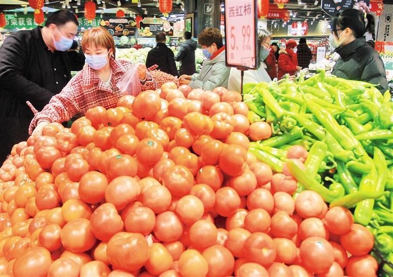 ▼2月17日,河北省张家口市宣化区一家超市,各类蔬菜、水果供应充足、品种丰富,前来采购的市民络绎不绝。