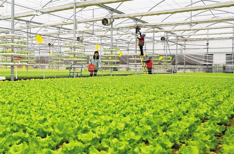 ◀2月15日,河南省南阳市内乡县中以高效农业科技创新合作示范园,菜农在查看蔬菜生长情况。南阳市因地制宜,大力发展高效农业,确保增产增收。崔培林摄(中经视觉)