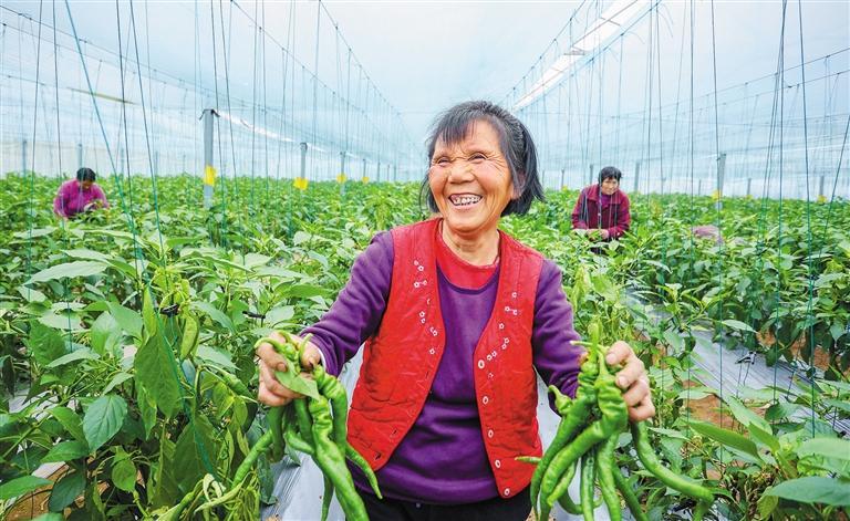 ▼2月10日,四川省射洪市沱牌镇龙泉村大棚蔬菜基地,村民在采收螺丝椒。该市通过调整优化产业结构和布局,做大做强蔬菜产业,确保“菜篮子”供给。刘昌松摄(中经视觉)