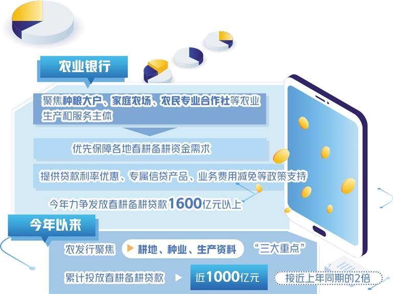 农业银行相关负责人表示,该行聚焦种粮大户、家庭农场、农民专业合作社、涉农企业、农业社会化服务组织等农业生产和服务主体,优先保障各地春耕备耕资金需求,提供贷款利率优惠、专属信贷产品、业务费用减免等政策支持,今年力争发放春耕备耕贷款1600亿元以上。农业银行还围绕13个粮食主产区,东北、黄淮海大豆重点产区,新疆、黄河和长江流域棉花主产区等重点农作物产区,以及国家乡村振兴重点帮扶县春耕备耕金融需求,做好对接服务,不断提升精准服务水平。