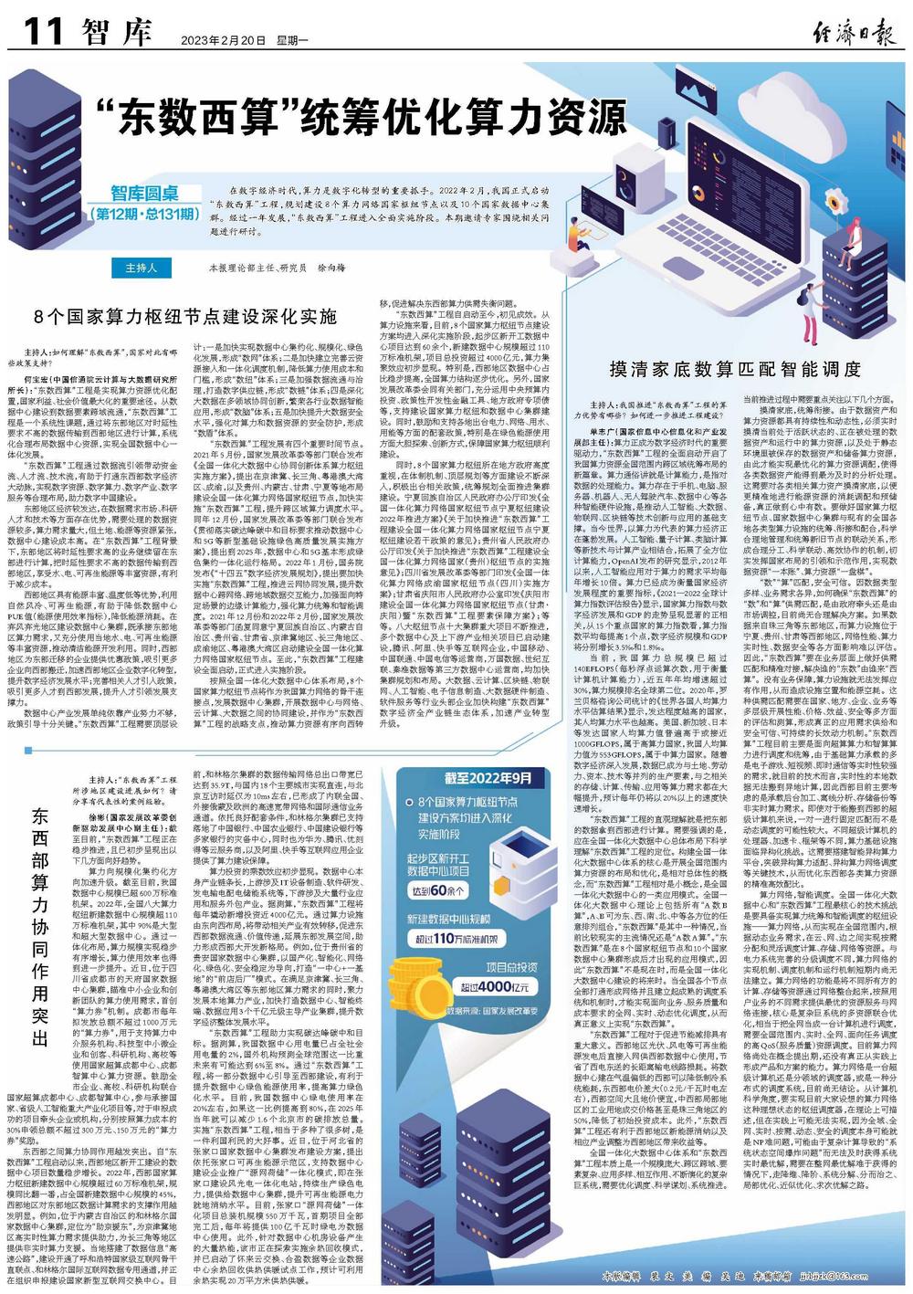 在数字经济时代,算力是数字化转型的重要抓手。2022年2月,我国正式启动“东数西算”工程,规划建设8个算力网络国家枢纽节点以及10个国家数据中心集群。经过一年发展,“东数西算”工程进入全面实施阶段。本期邀请专家围绕相关问题进行研讨。