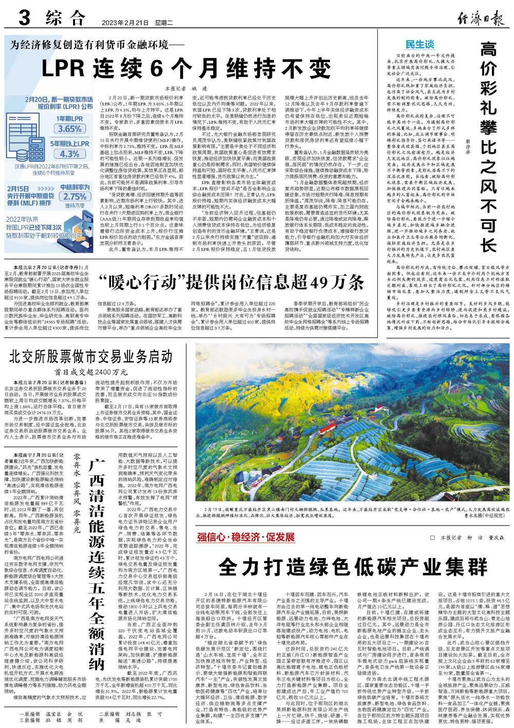 “1月金融数据整体表现超预期,经济复苏趋势明显,近期公布楼市数据展现回暖迹象,市场对短期央行降准、降息预期有所降温。”周茂华说,降准、降息可能仍在,主要是复苏基础仍需夯实,加之国内财政政策积极,需要营造适宜的货币环境;尤其是降准仍有必要,通过降准或定向降准,释放银行体系长期限、低成本稳定的流动性,有助于稳定银行负债成本,增强银行放贷能力,引导银行金融机构加大对实体经济薄弱环节、重点新兴领域支持力度,优化信贷结构。