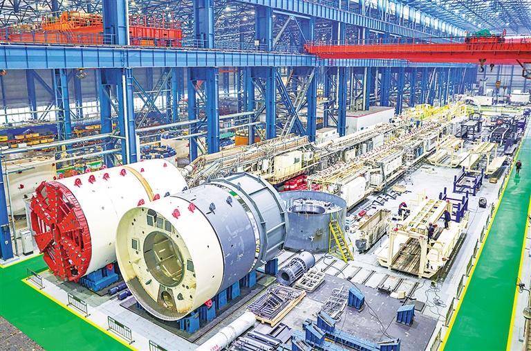 今年以来,位于辽宁省沈阳市的北方重工有限公司订单增长速度好于往年,各车间一片繁忙景象,员工加班加点抢工期、赶进度、保订单,全力推进盾构机等重大装备建造。图为公司盾构机生产车间。 新华社记者 杨 青摄