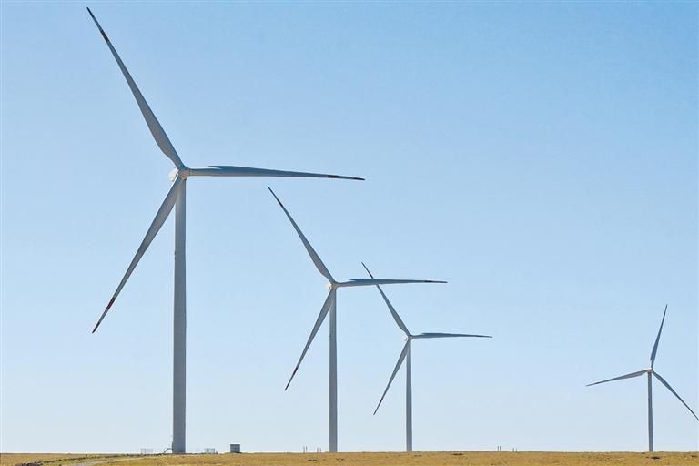 札纳塔斯100兆瓦风电项目由中国电力国际有限公司和哈萨克斯坦维索尔投资公司共同投资,中国水电建设集团国际工程有限公司承建,中国电建集团成都勘测设计研究院有限公司总包实施,共建有40台2.5兆瓦的风电机组,是中哈合作的中亚最大风电项目。项目每年可发电约3.5亿千瓦时,相比同等容量的火力发电每年可节约标准煤约11万吨。该风电场的投产对改善哈南北电力供需不均的状况具有重要意义。图为哈萨克斯坦札纳塔斯风电场风机。
