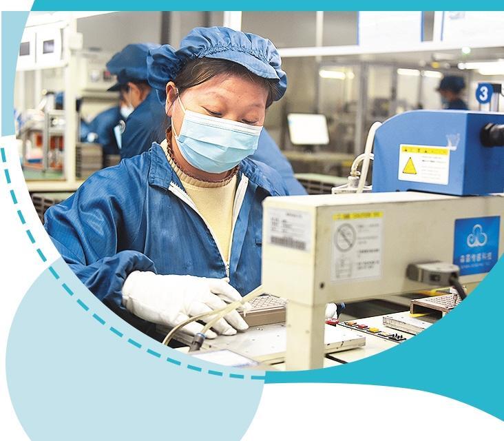 记者在森霸传感的工厂里看到,一座座标准化厂房排列整齐,干净整洁;无尘车间里,智能化生产流水线有序运转,车间的数字屏上实时滚动着生产线的运行情况。“智能化生产线的投入使用,对提高生产效率大有裨益。”廉五州说。