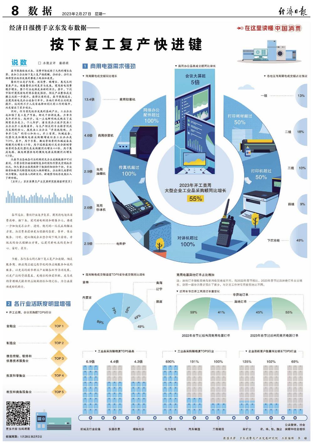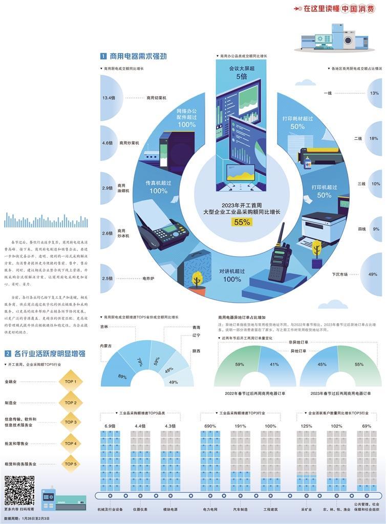 从春节后各地各行业的购买及企业采购数据中可以看到,尽管当前仍面临错综复杂的国际形势及宏观经济状况,但大量企业依然保持了较强的韧劲和干劲,专业物资和数字化转型相关投入保持增长,企业持久经营的动力增强,这些喜人的新变化、新趋势为经济发展注入了新动能。