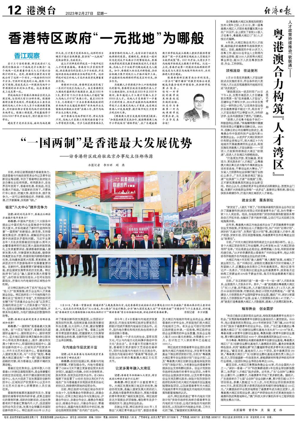 郑伟源:特区政府十分重视青年工作。大湾区发展发挥三地互补的优势,推动协同发展,是融入国家发展大局的切入点,既能为香港带来发展动力,更能为香港的青年带来更广阔的发展空间。特区政府在这方面提出多项措施,增加青年在多个领域的实习、就业和创业机会。