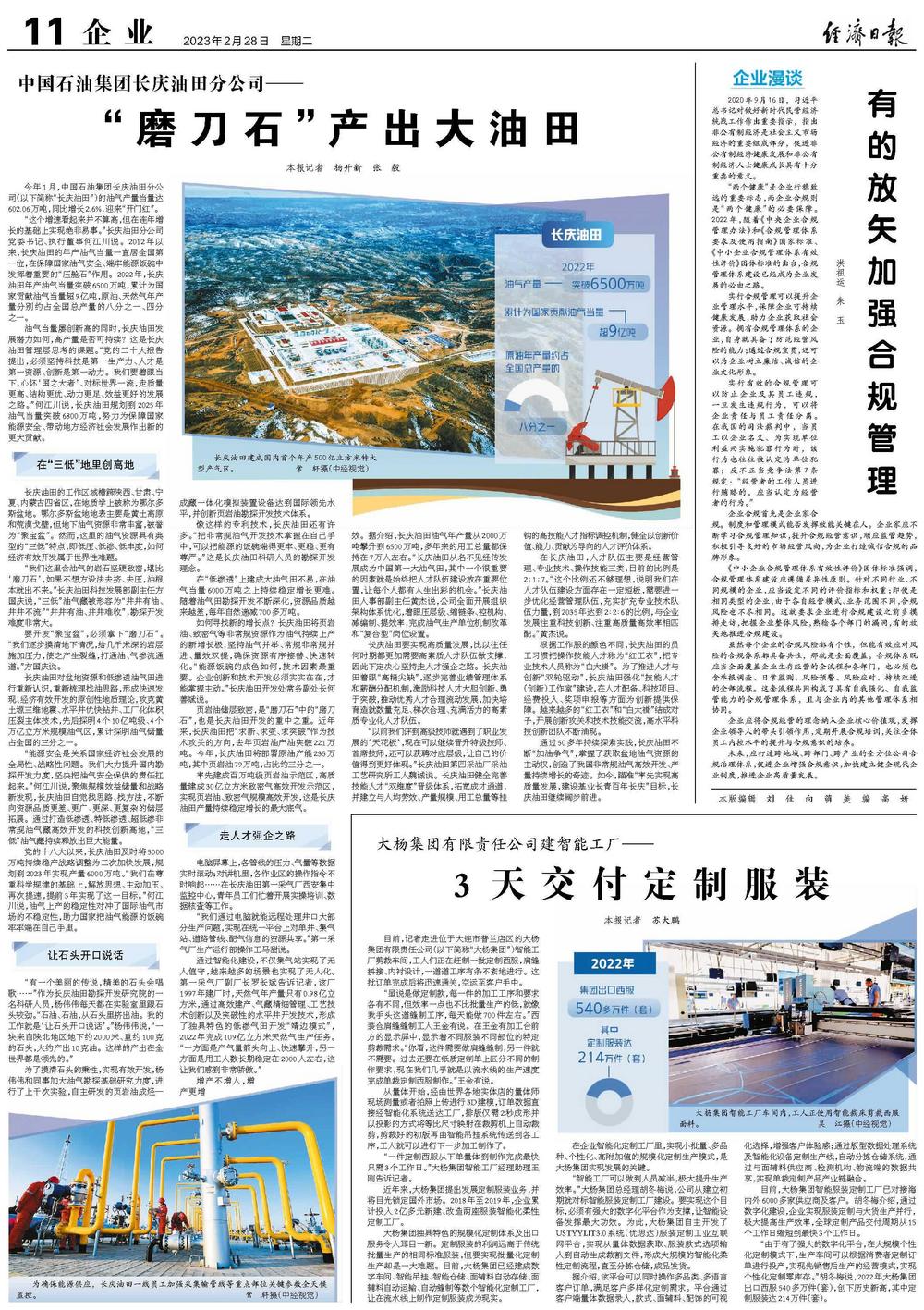 率先建成百万吨级页岩油示范区,高质量建成30亿立方米致密气高效开发示范区,实现页岩油、致密气规模高效开发,这是长庆油田产量持续稳定增长的最大底气。