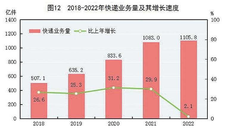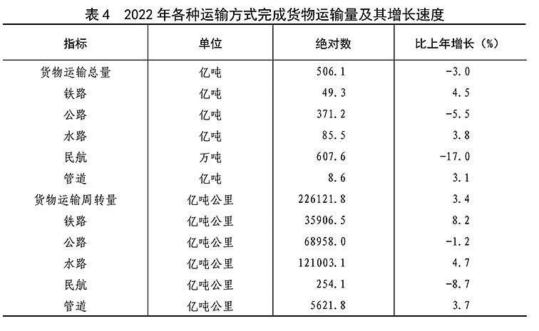 [26]货物运输总量及周转量包括铁路、公路、水路、民航和管道五种运输方式完成量,2022年增速按可比口径计算。